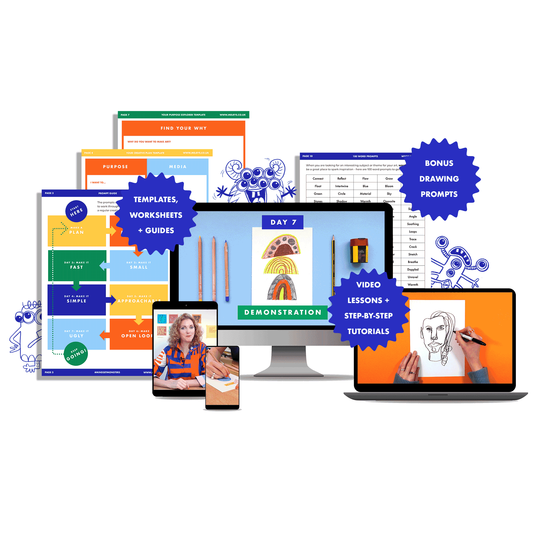 ✔️ Seven (or more) artworks which are just the beginning of the work you will make with your new, regular creative habit